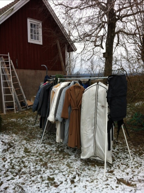 Vilken flit! Nu drar Rurik ut sin garderob, för naturlig djupfrysning. Är där några små djur (det finns ju sånna som tycker ylle är mums) ja, då dör dom nu.
