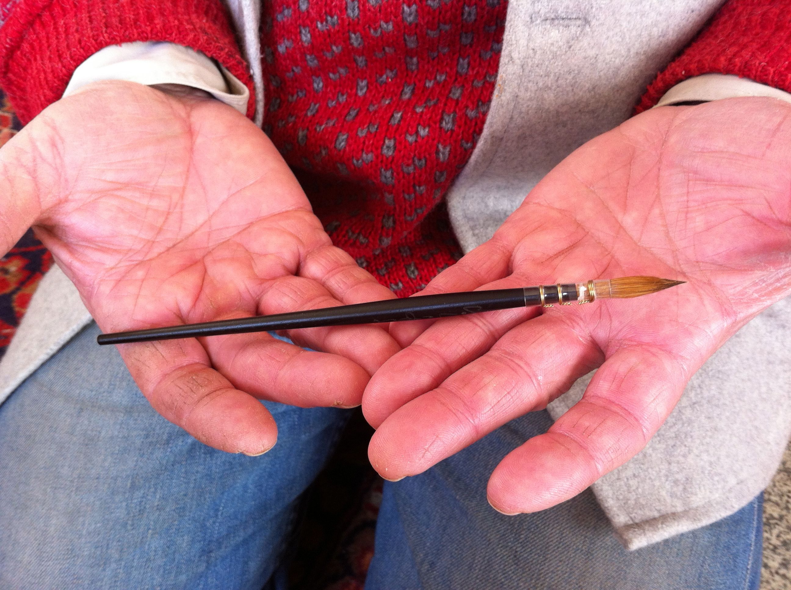 Mårdhårspenslar har en fantastisk förmåga att hålla färg. Man kan måla lååånga fiiina linjer. Inte nog med det; spetsen!! Spetsen är så fin – även på tjocka penslar. En lätt tryckförändring medan man målar en linje kan göra en linje fantastiskt nyansrik. det här är poesi på hög nivå!