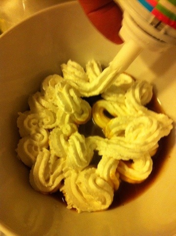 -är det fest ska det vara grädde. Soyagrädden har sin likhet med Champange. Den ska skakas ordentligt innan användning. – ju mer grädde ju mer fest, sa Rurik, o gick knappt att stoppa.