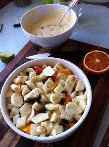 Palsternacka” sa Rurik o lyste upp. Tanken var ju att det skulle vara samma ingredienser som i ”orange mat” inlägget. Men det är inte lätt när man älskar att improvisera!