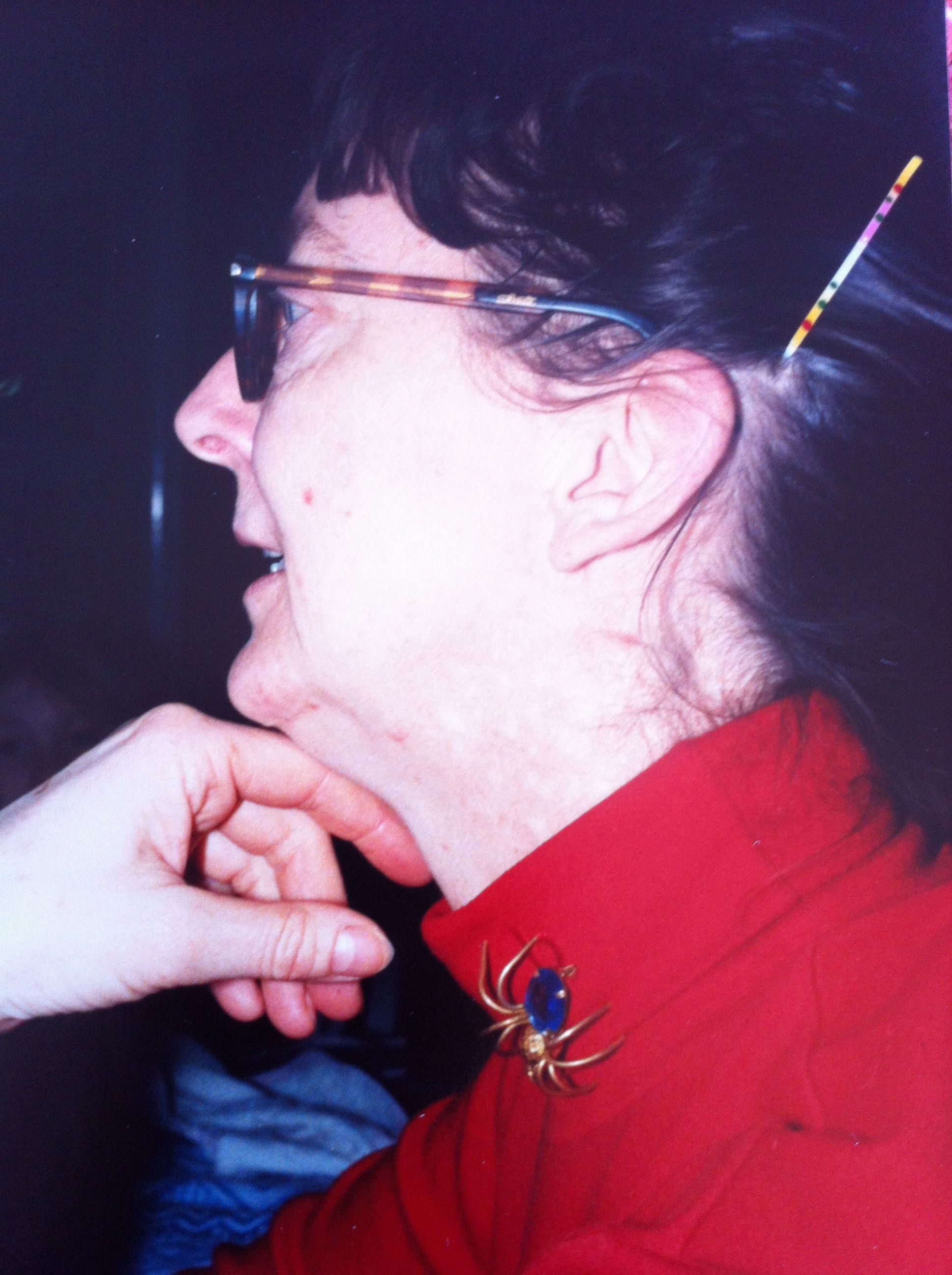 Det är nog något som går i släkten, broschen är från hennes farmor, Signe. Och precis som min mor som är extra snäll med spindlar, så är även jag det – och antagligen mina döttrar..
