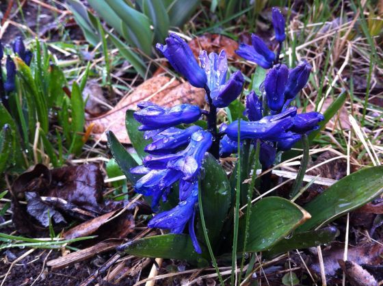 Lite förskrämda i snöyran sticker dom upp, vår vårblommor.