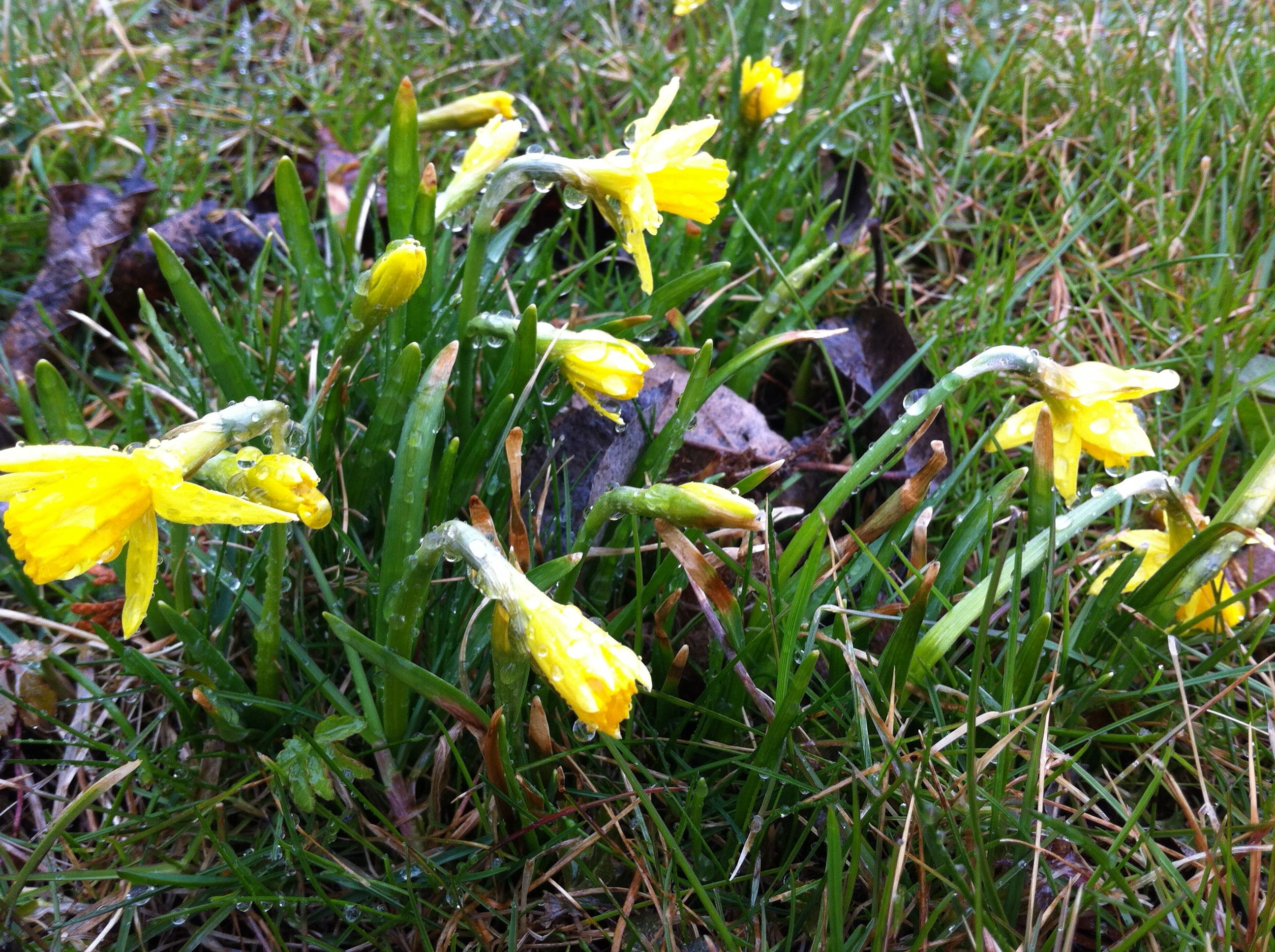 Hörde en gång en trädgårdsmästare på radio som sa att påskliljorna alltid är framme till påsk. Det verkar faktiskt som han har rätt. Oavsett om Påsken är tidig eller ej, så brukar de sticka upp.