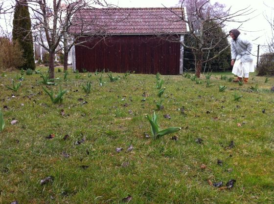 Det här är våra babys, 108 ståtliga tulpaner…. bara blad än så länge, de behöver några veckor till.