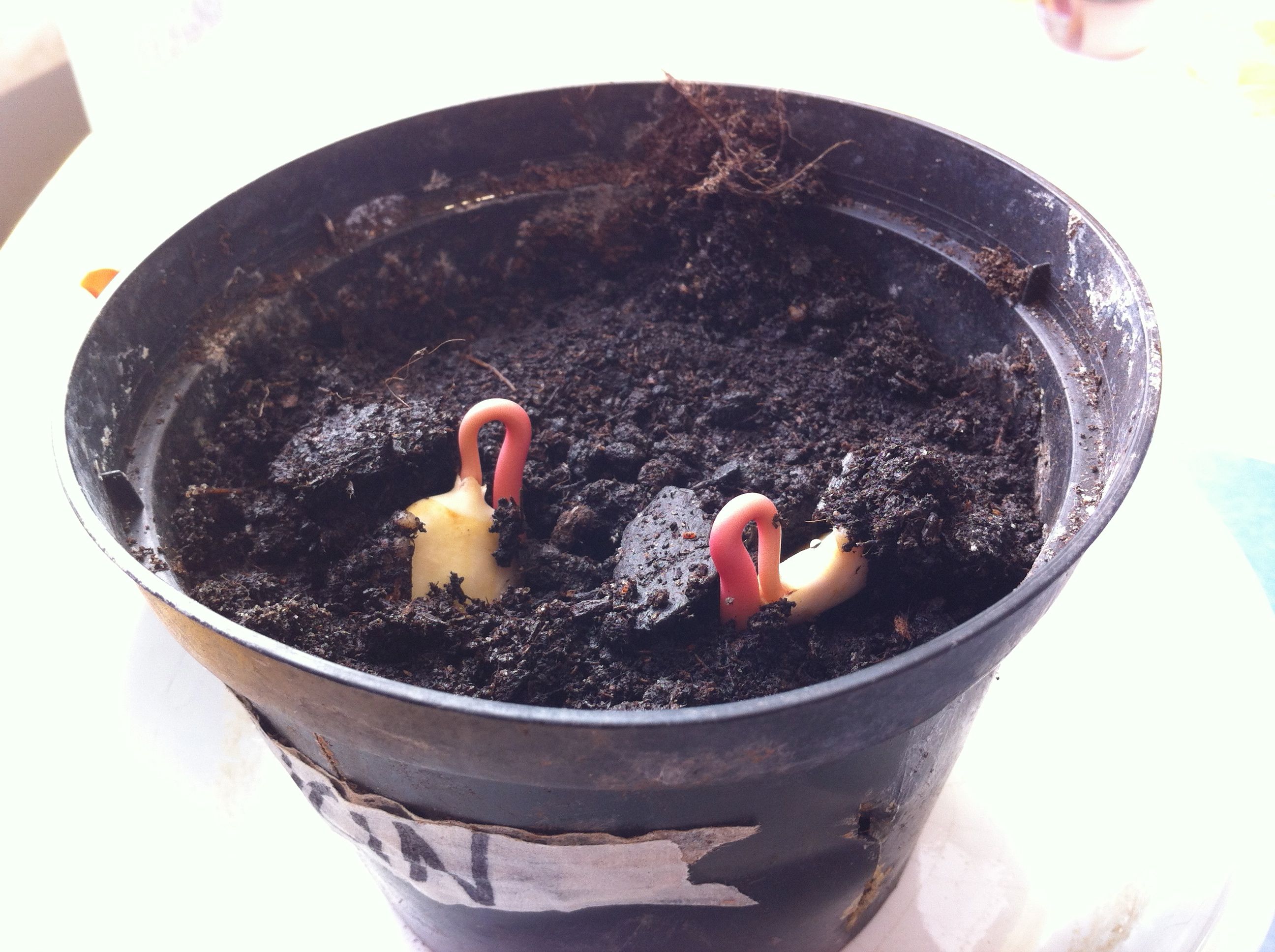 Livet behöver den tid det tar. Det bara är som det är. Men Gud vad spännande! Ett par stora frön nedstoppade i jord har hedersplats i köksfönstret.