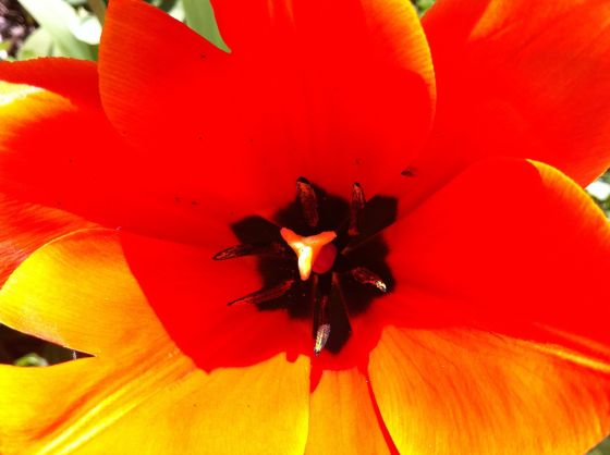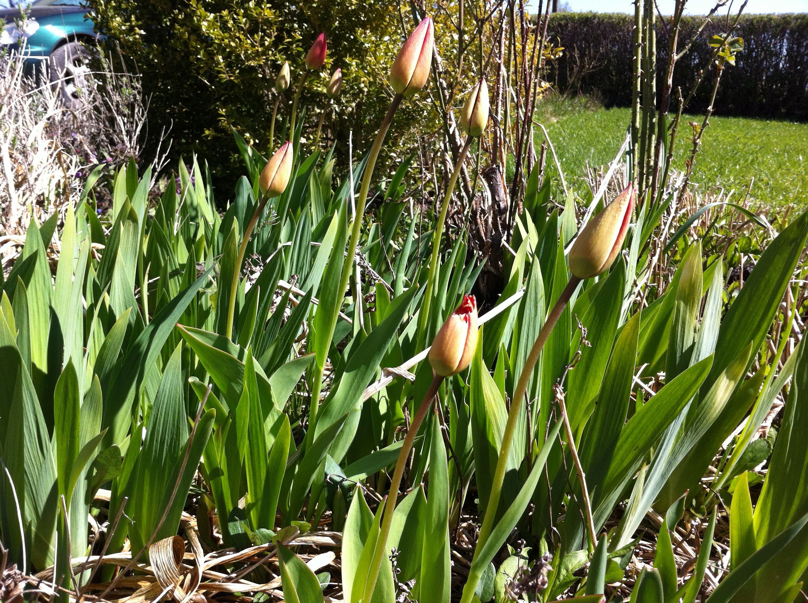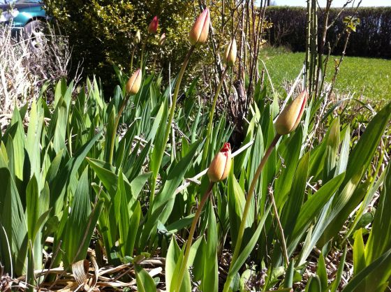 Detta var några dagar sen då tulpanerna precis rest sej upp och bytt färg så där försiktigt. Jag plockade en vårbukett. Med doftande hyacinter, gullviva och en liten tulpan. Men se på den där tulpanen! Den hörde vad jag sa; och så ropade den ” Ja! Jag vill också vara med! Hurra!”