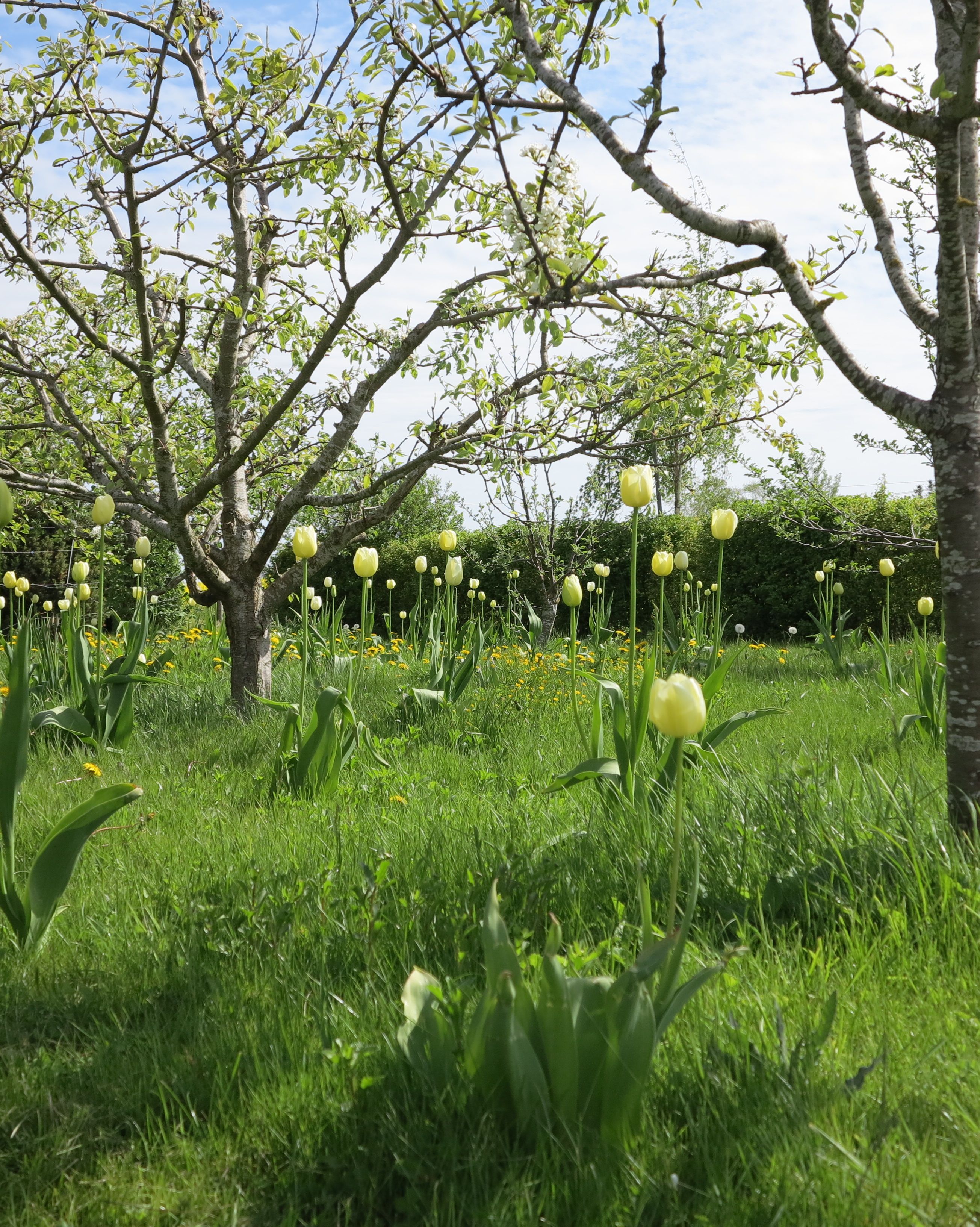 Om man bortser från rapsfältens intensivt gula färg, på åkrarna runt hela vår tomt, så är nog tulpanerna och äppelblomningen det finaste vi har just nu. Det var Lördagens trädgårds-rapport. – och Välkommen nu på Söndag! ”LIV ÄR KÄRLEK”