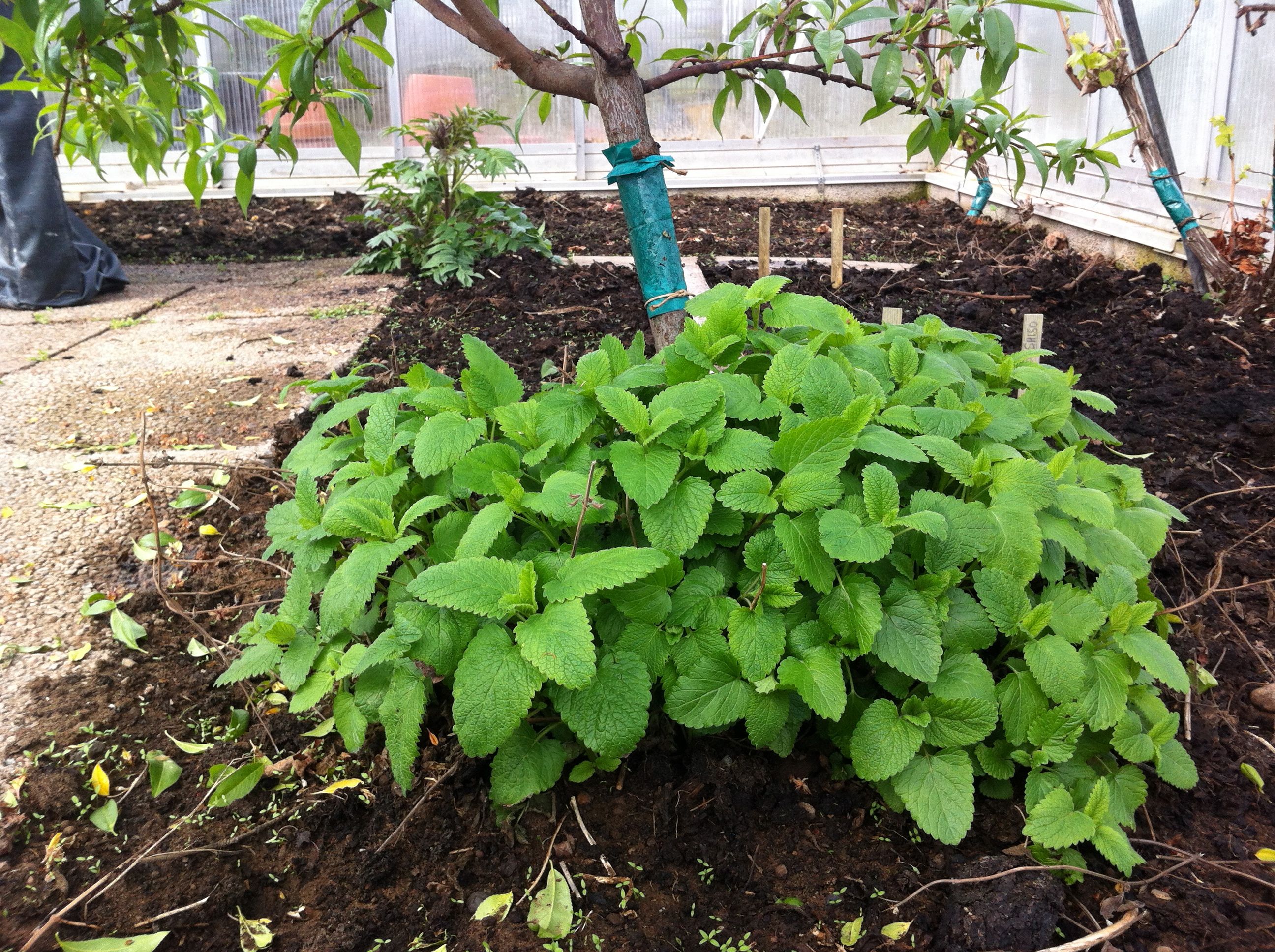 Växten på bilden heter citronmeliss. Den växer både i vårt växthus och på friland. Den har ett namn till ”Hjärtans-fröjd”. Gissa varför? för att människor alltid har vetat att den skingrar nedstämdhet och ger lugn. vet du om det?