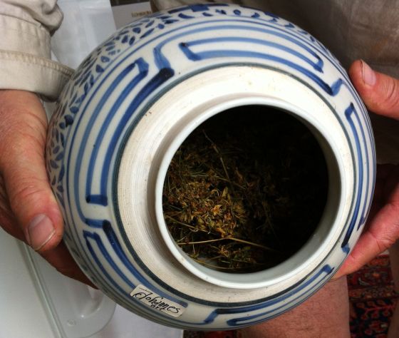 Rurik tar ner burken med Johannesört.