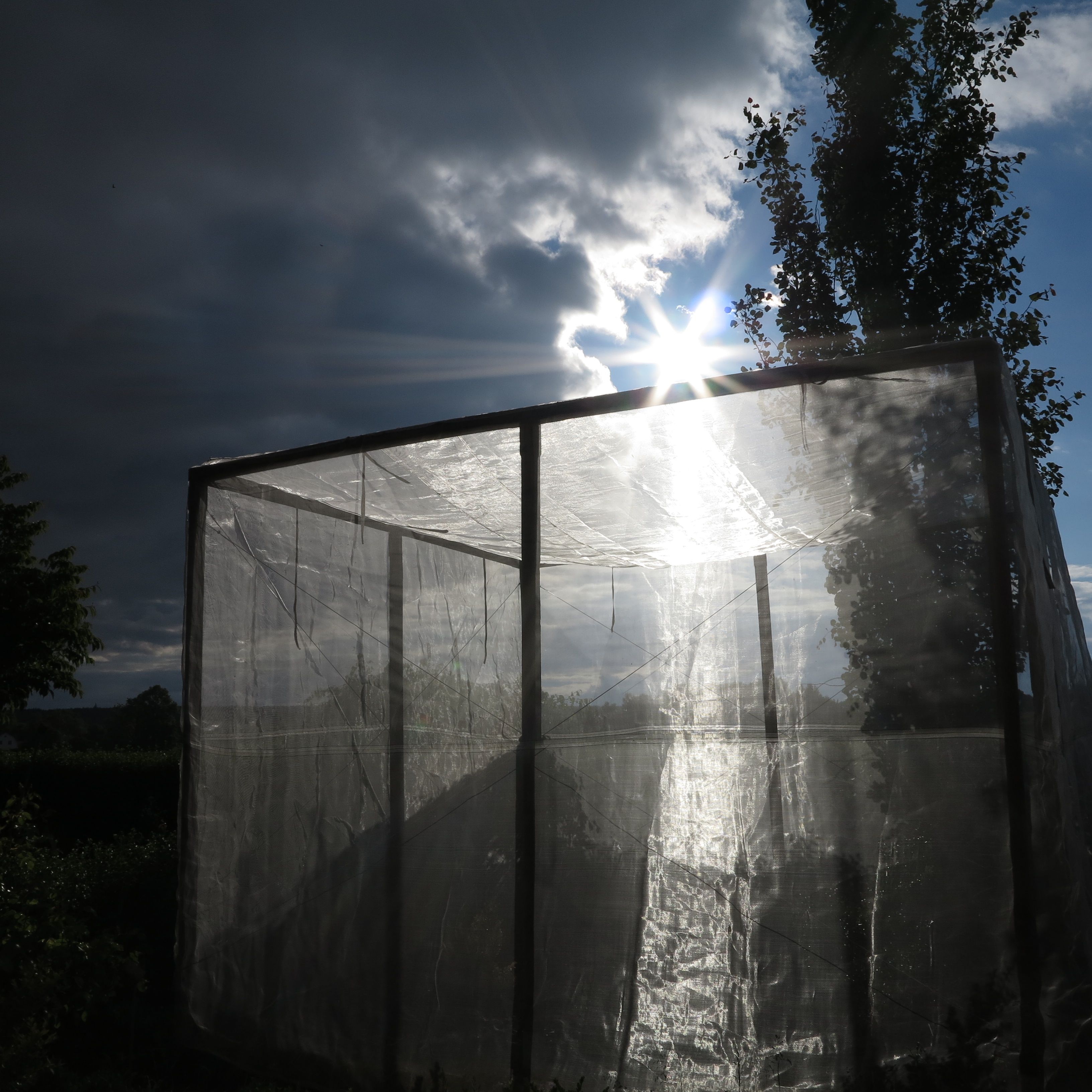 ”Nog borde man kunna bygga ett litet tält eller hus över sina kålplantor, så man kan vara där inne och arbeta” sa jag till Rurik.