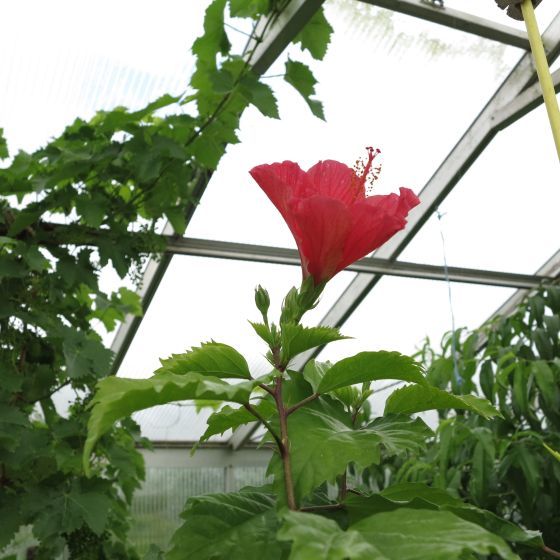 ”Tut-Tut” säger Ella. Hibiskusen Ella tronar mitt i glashuset, till Midsommar kommer London-Ella hit. Det gillar vi!