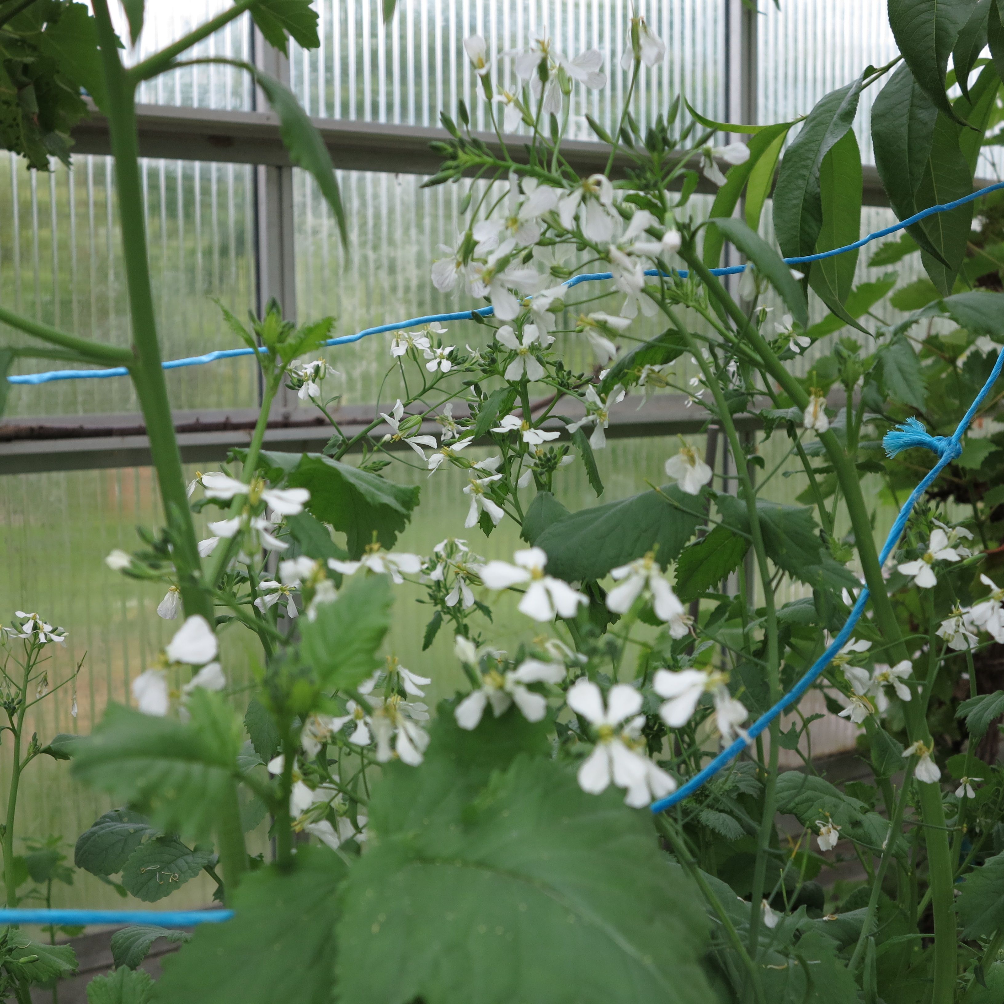 Ända sedan jag fick gula rädisor av Maria (hej Maria!) som såddes och blev bortglömda så är detta en av våra favoriter! Så här odlas rädisan i Thailand, den får gå i blom och sen plockas frökapslarna. fin rädissmak, kan ätas rå eller wokad. Det dröjer inte länge så kan vi skörda.