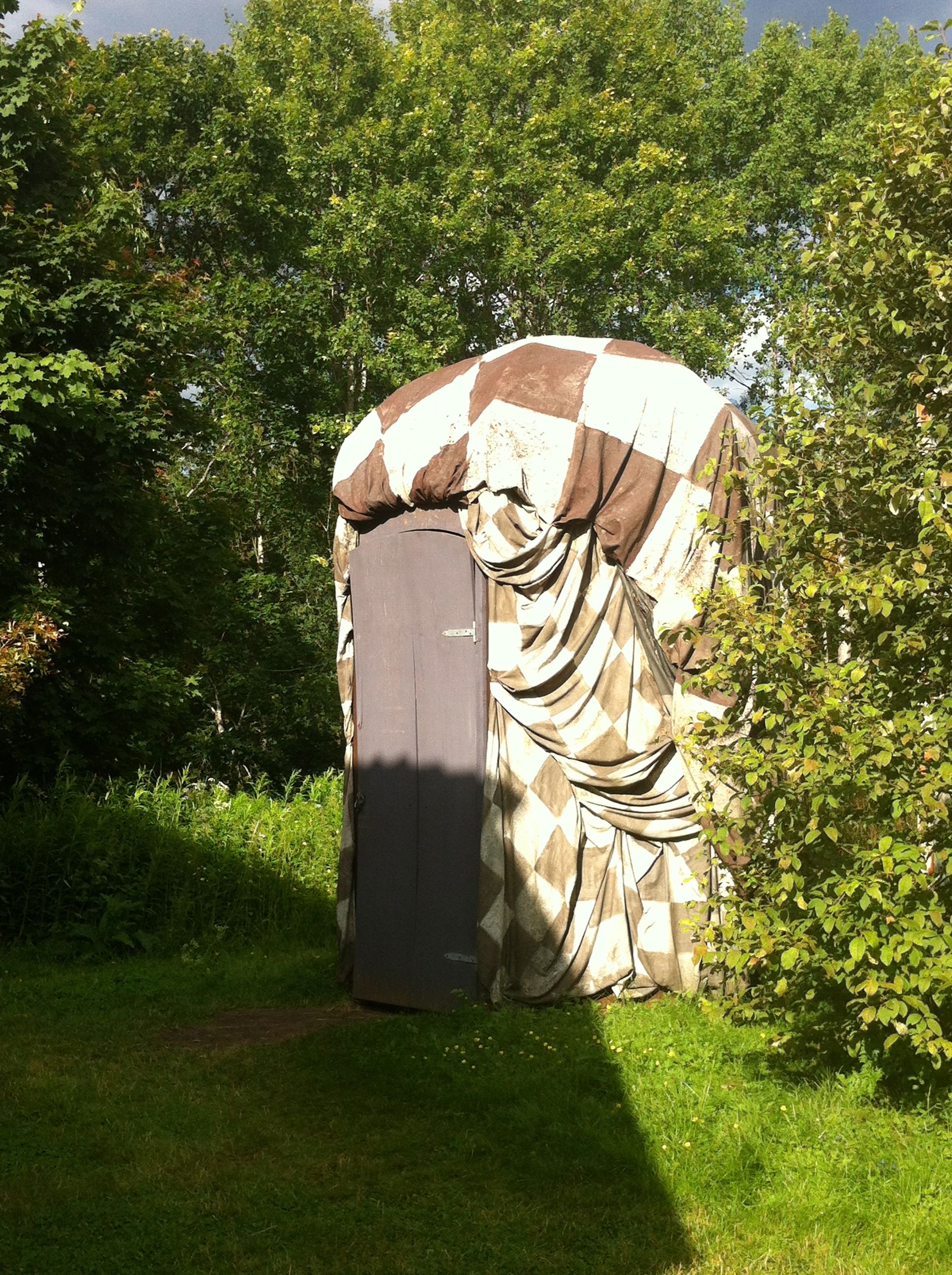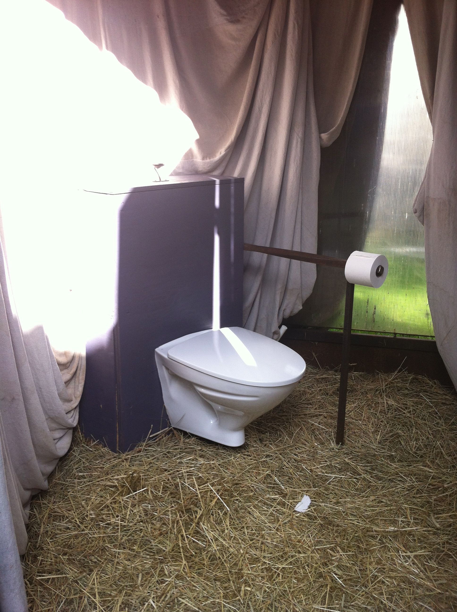Kan du fatta? Detta är en toalett!! Klädd i tyg/ presenning. Så öppnade jag dörren…