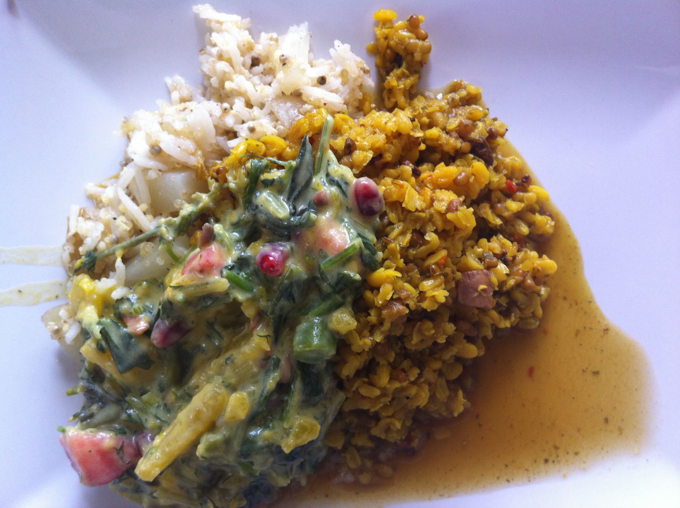 Nu är den bästa av årstider, massor med grönt från trädgården och böngryta får samsas på tallriken. Det som blir över i risgrytan rullar jag i mina händer…