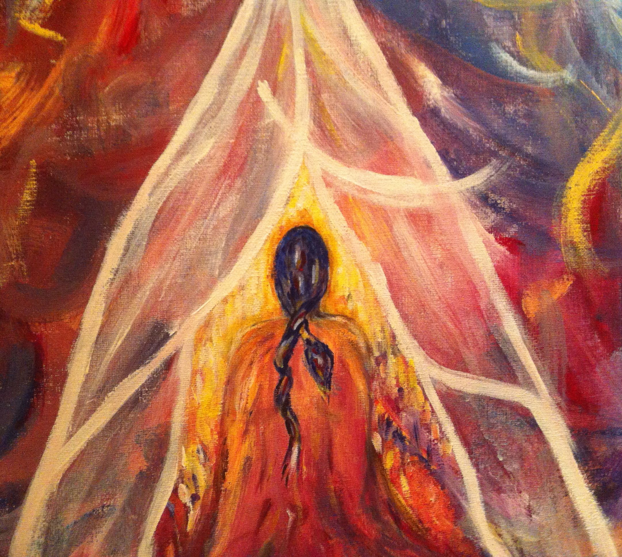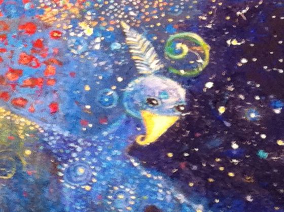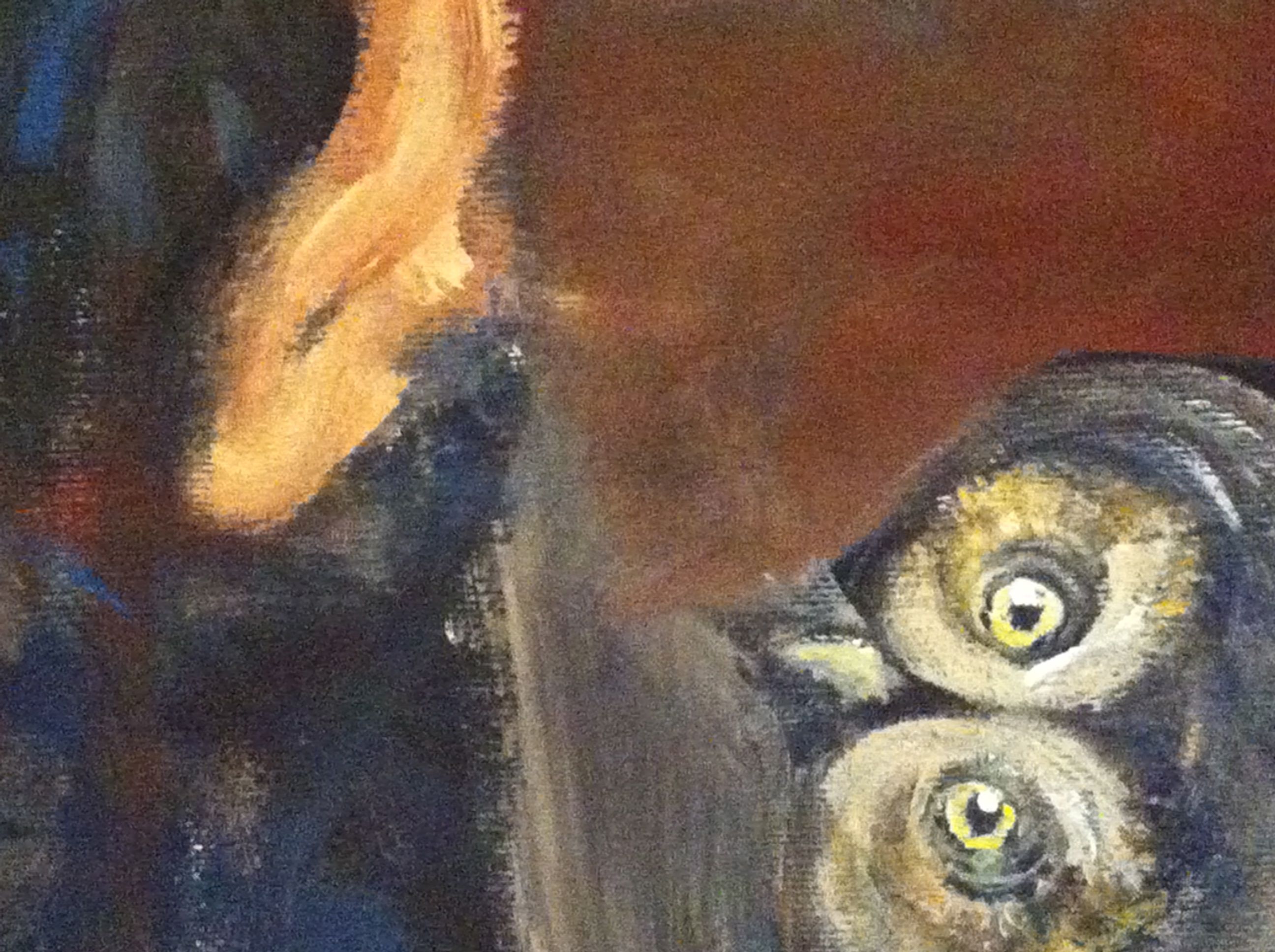 Man kan möta sig själv i många former, tex i form av en uggla. Det här är detalj av en av mina målningar.