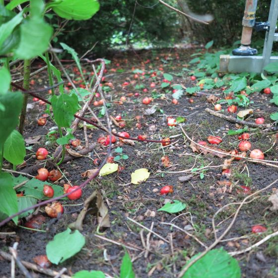 Det är våra starar som har varit väldigt flitiga, antagligen tidigt i morse. ”Dom har tömt halva trädet” sa Rurik. Jag gick dit och tittade, dom måste ha haft total orgie i söta körsbär. vilken lycka – för dom! Pickat lite grann och slängt dom hit o dit. Dom har tagit mer än hälften.
