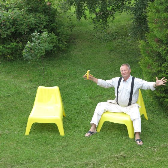 Men skam den som hänger läpp denna regniga sommar. vi har skaffat banangula stolar på IKEA. Dom är bra mycket gulare än på bilden! Det räcker att titta på dom så går smilbanden upp! Hurra för gult!