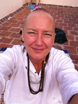 Ahh vilken härlig start på en dag! Allt är perfekt utom insikten att mattans lila färg fastnar på både händer, fötter och kläder. Det är sånt som händer i Indien! Det får vara priset på ett yogapass…
