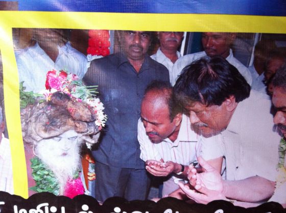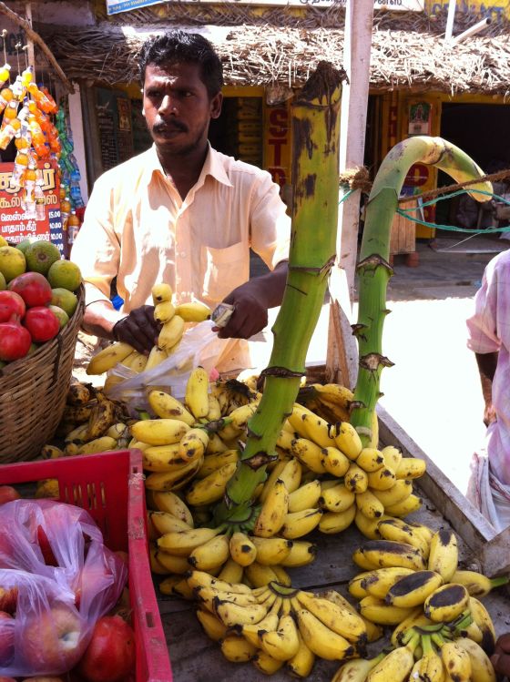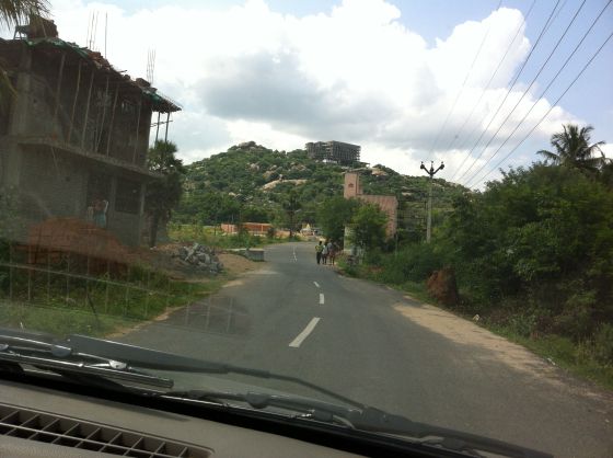 Bananer, grantäpple och några lyxiga äpplen ( de har kommit hit ända från Himalaya, här är för varmt för äpplen att växa). Vi var fyra i bilen. Jag, chaffören och i Vellur plockade vi upp två personer, en äldre man som var nära Baba och hans vuxna son som pratade engelska. Det var han som berättade lite mer om Baba för mig. Så det jag beskriver nu är från det han berättade för mig.