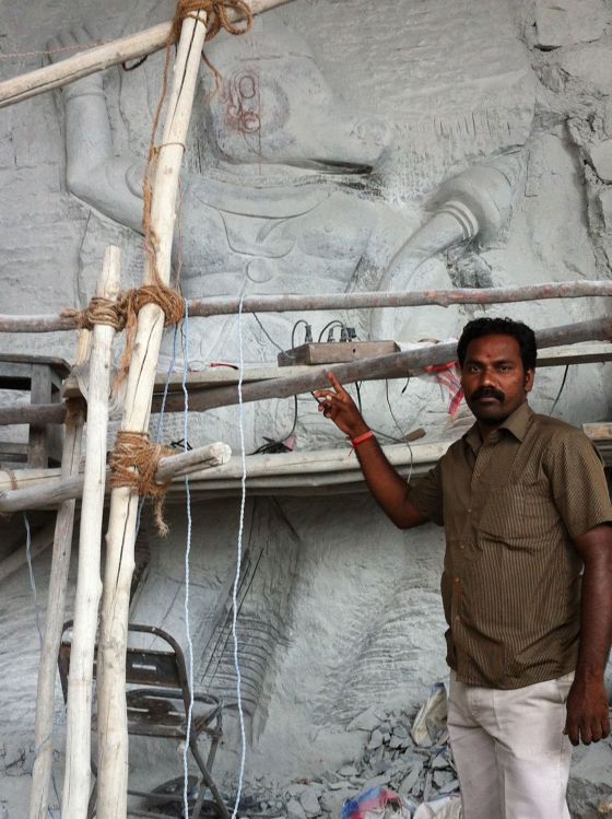 Några Bilder knackades ut direkt på berget. Här poserar Thiru, chaffören brevid den blivande bilden av Hanuman, apguden.