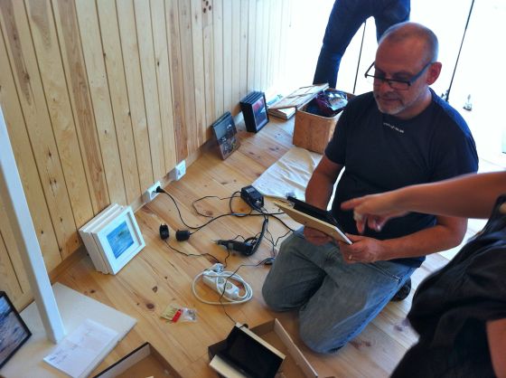 Det är lite småmysigt, för vi har inte träffat varandra på hela sommaren. Alla skruvar i öglor isina tavlor och små snackar.Vi bloggare tar fram våra kameror. ”ställ upp er” säger Gebbe och tar fram sin kanon. Han har en fantastiskt fin blogg med sin konst och naturlivet runt Tåkern.