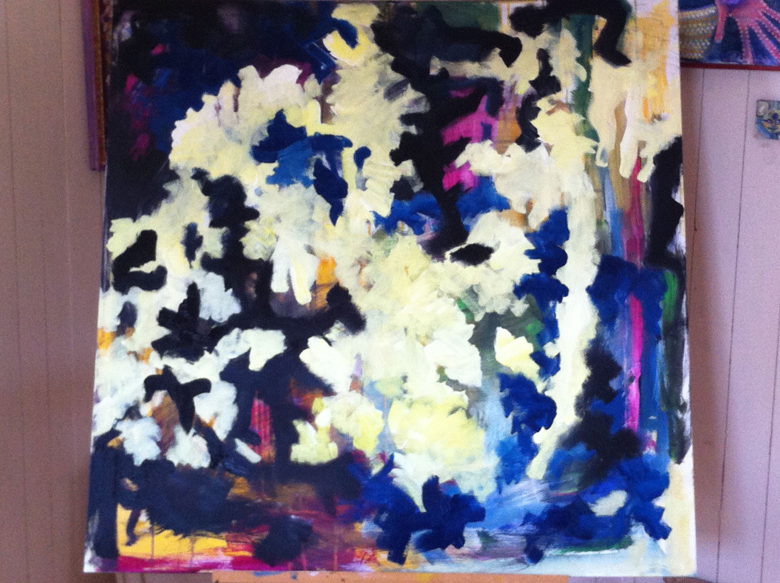 Jag vänder och vrider. Det är en stor tavla 1x1m. Det börjar se ut som storm…