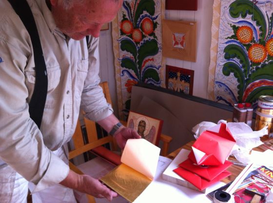 Vi går in i ateljén. ”Hur ska vi lägga upp utställningen på Naturum” vi tittar och drar i våra tavlor. gör lite skisser.