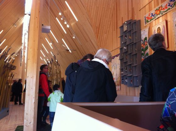 Men vår publik bestod av många skygga fåglar, så vi var lite försiktiga. Det gick inte att vara för framfusig. Det kan nog ha varit flera hundra besökare på området idag, kanske 500. Av dom var drygt hundra även hos oss och tittade på konst.