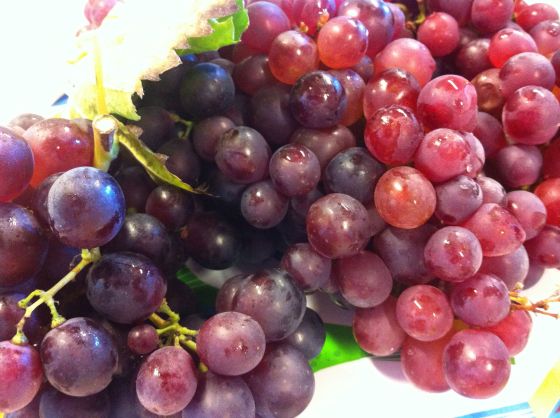 ….en bricka med massor av våra helt gudomliga vindruvor. Det kalla vädret gör dom fantastiskt söta och goda i smaken. dom behöver helt enkelt nästan frysa ihjäl för att bli sådär perfekta. Så är de nu. Det var många som åt och rullade med ögonen.