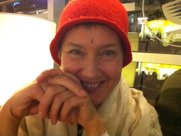 Så nu sitter vi på stationen i Stockholm och väntar på Blåklintbussen som ska föra oss hem till Vadstena. Yllekläderna är på, hatten utbytt mot den tovade i rött.