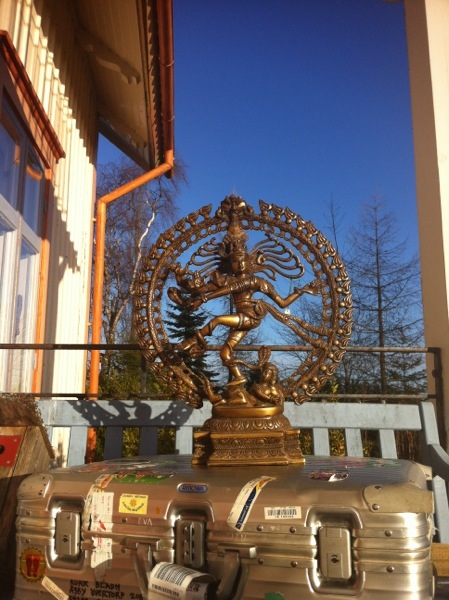 Hemma. Solsken. Shiva dansar. På fastukvisten står vår packning.