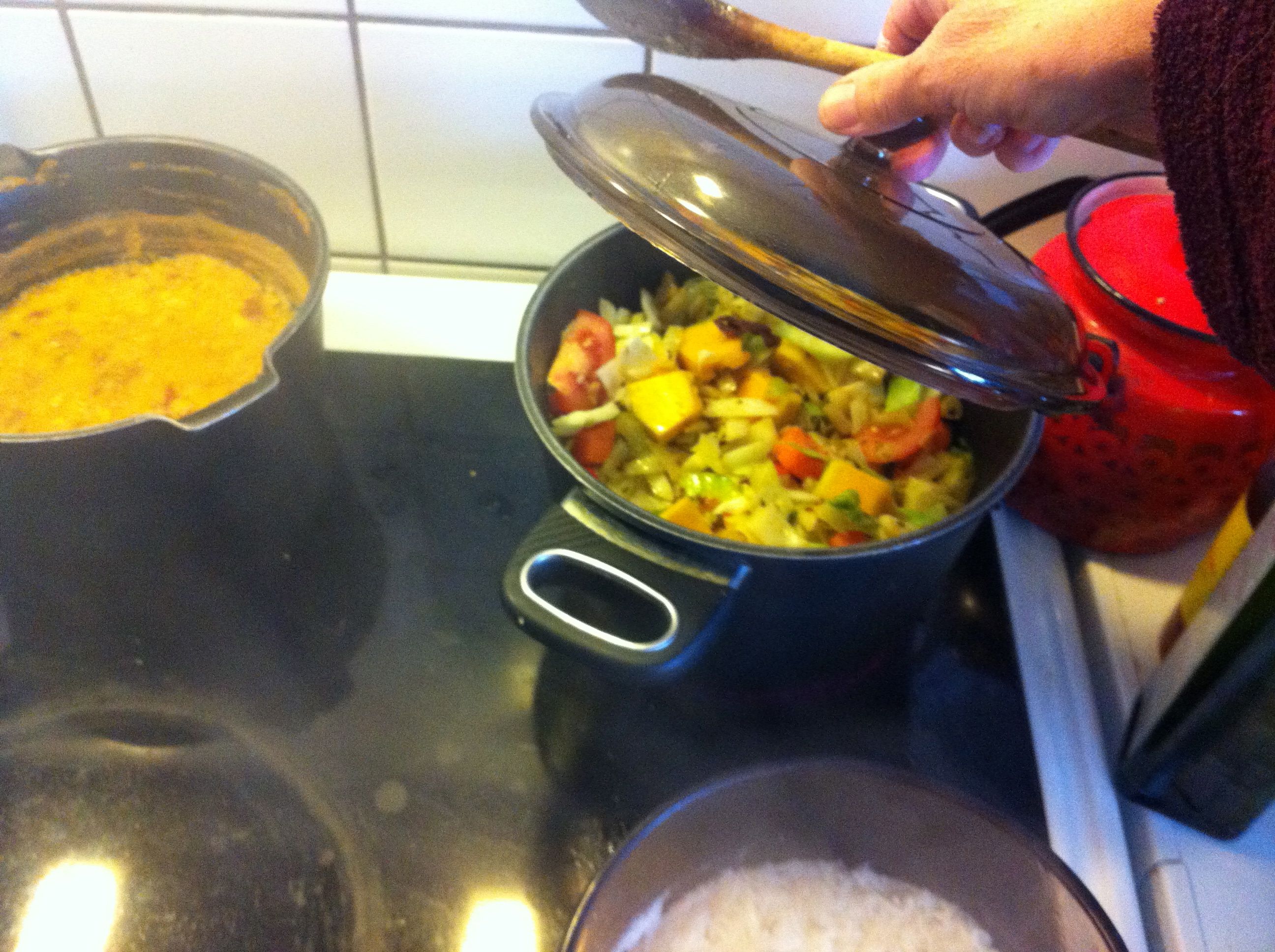 Det blev en dhal, en grönsaksgryta och en lektion i hur många olika sorters ris det finns. ”kryddorna, det var ju flera som jag inte ens visste fanns” säger Stig och Rurik myser. Det är härligt att visa för någon som blir storögd och säger ”Ahaaaa”. Kikärter (som finns i plättarna) och bönor(som finns i Dhalen) är bra proteinkällor och ger fin mättnad.
