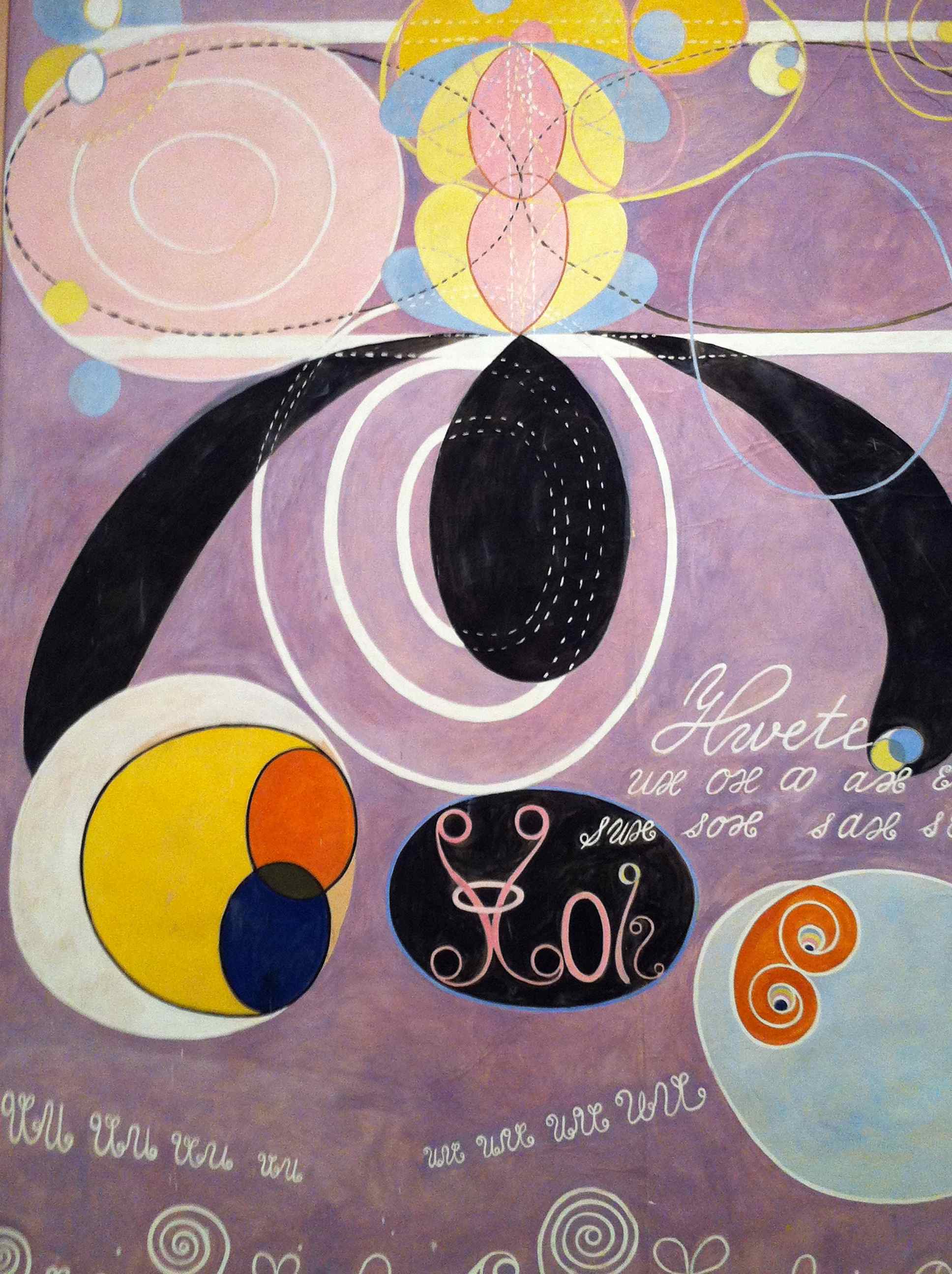 Det är kanaliserad konst. Spiritism var ett begrepp på den tiden. Hon tillät sitt eget ego stiga till sida för att låta en annan del av verkligheten komma fram.