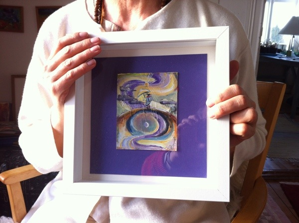 …skulle tavlan överlämnas. Den tavla som jag, Ganga målat, som var ett av prisen i Omkulturs konstlotteri.