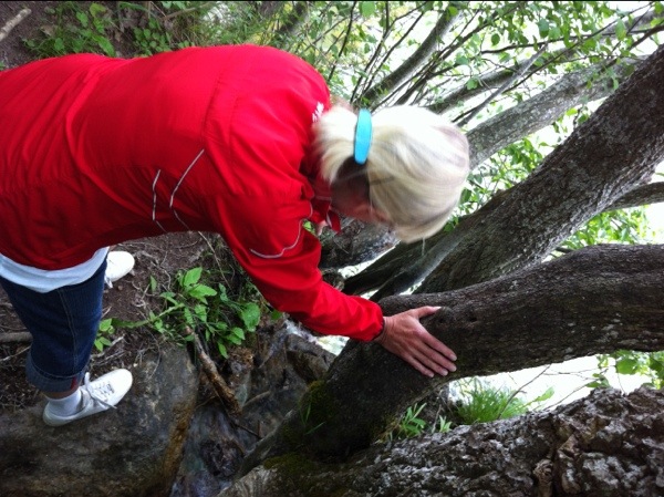 Vi vandrar genom en skog av vackra, visa, stora gamla ekar.
