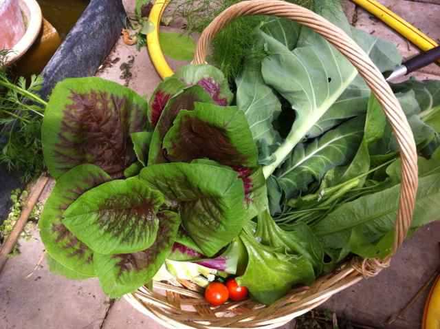 En sväng i trädgården och packa dagens middag av nyplockat…sen in o packa väskan…