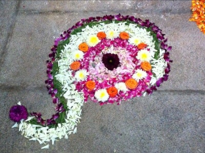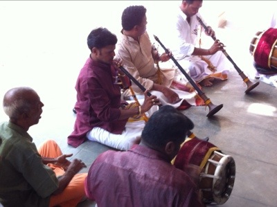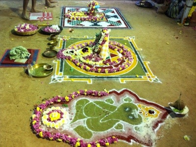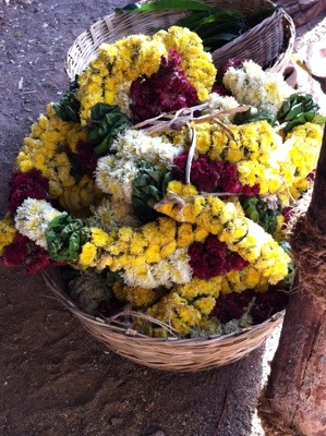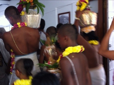 Sen öste de på! Det bar blommor, kum-kum, gult ris, frukt och massor, massor an mantras!