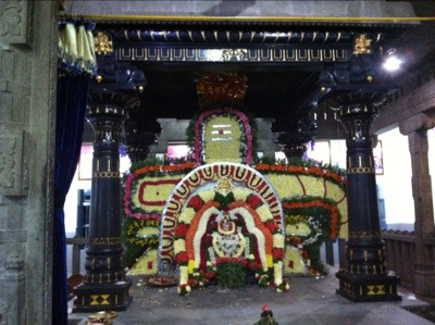 Blommor, det kan dom! Det här var liksom avslutningen, en blomförstärkning av Shivalingan. Tänk, alla dessa blommor som varje dag, i alla tempel offras! Vilka mängder! När det sen blir en ritual som den här, då snålas det inte. Blomman symboliserar mycket det öppna rena hjärtat, här blir det människans kärlek till Gud.