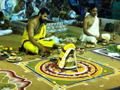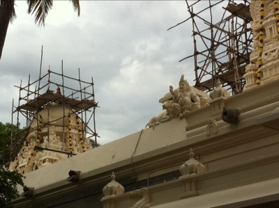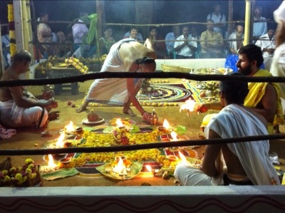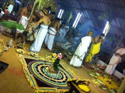 Maha Kumbhabhishekam är tre dagars intensiv ritual man har i sydIndien för att öka kraften el Gudsnärvaron i tempel. Storslagen och kostsam görs den inte så ofta.