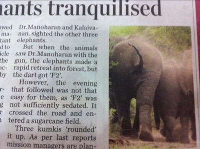 Ja, rumpan av två elefanter var stoff på första sidan. Historien med de vilda elefanterna som driver omkring i närheten av Thiruvannamalai fortsätter.