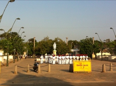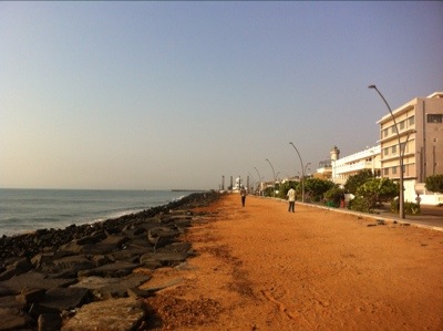 Pondicherry är en stor rufflig stad, som alla andra Indiska städer. Men området vid havet, ovanför Beach Road lever sitt eget liv. Stilla romantik, med raka, hela gator. Man blir närmast förrvirrad! Nu blir det en del av min morgonrunda.