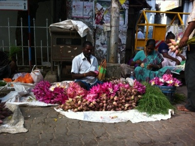 Jag tar mig in mot stan igen. Ganeshtempel ligger inte långt här ifrån. Blomsterhandlarna är välförsedda. Massor med lotusblommor!