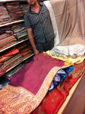 Så hamnade jag i en sån där liten butik med allt sånt man vill ha som turist i Indien. Sjalar, sjalar och sjalar. Den här låg på Nerustreet och hade bra priser redan innan förhandlingarna.
