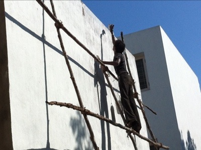 Ja, det här är vardagen för en målare. De anlände med att antal störar, knöt ihop och nu är det en stege.