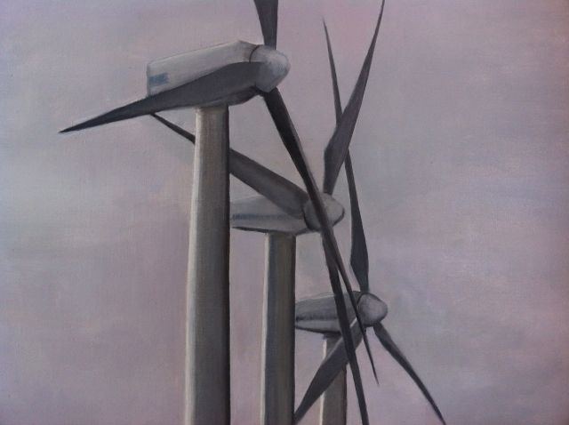 Ila målar vindkraft, vita ensilagebalar o annat intressant i den lantliga verkligheten. Ila och Johan Örtlund ställer bägge ut just nu i Mjölby. Rekomenderas varmt.