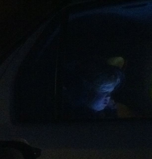 Kväll. Jag sitter i bilen och väntar på att Siri ska komma från ICA.  Jag tittar in i bilen bredvid.Det märkligt upplysta barnansiktet ser först så där skräckfilmsaktigt ut. Men, det här är den nya tiden, det har jag fått lära på min skåneresa.