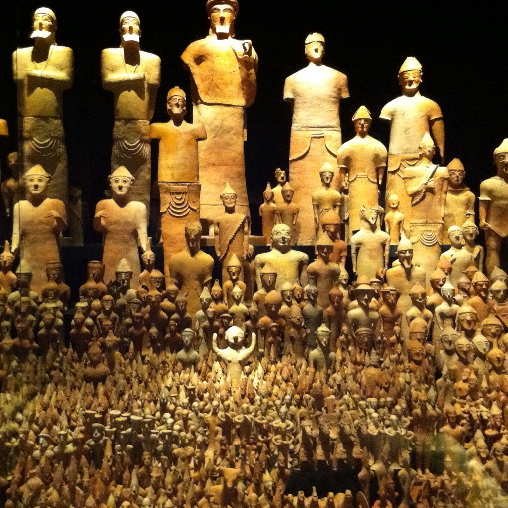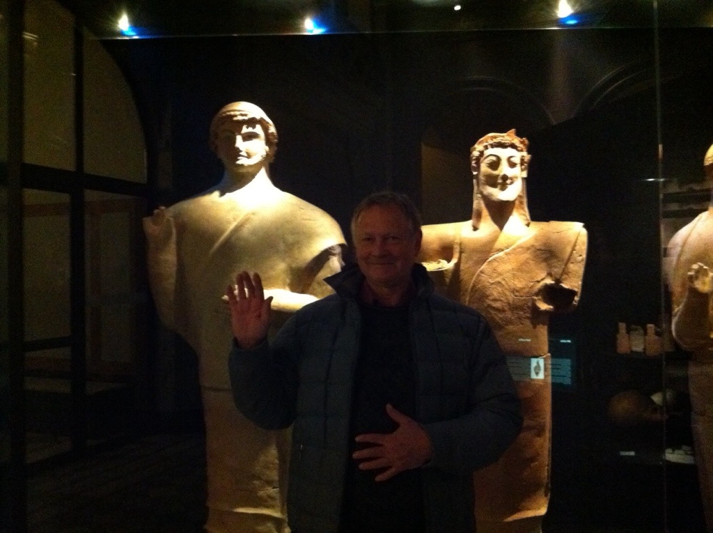 Här satte jag mig, full av beundran. Vilken njutning o vilket härligt sätt att visa alla lerfigurer. Så gåtfulla, från en tid fylld av mystik. Varför? O var var dom funna? Redan glömt, men de var kopplade till mystiken vid Delfi.