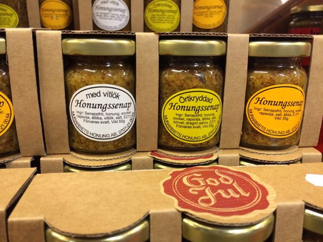 Mängder av olika sorters honung o honungsblandningar och senap…..