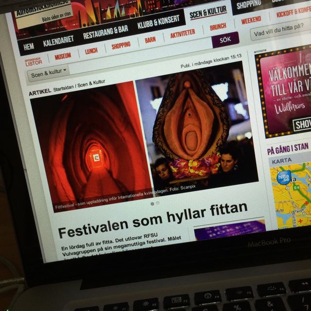 Vi läser nyheterna på datorn. Naturligtvis fångar den här festivalen mitt intresse och får mungiporna att gå från öra till öra på mig.