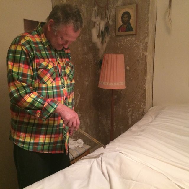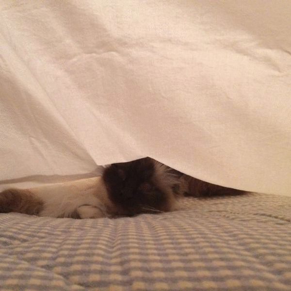 Vi byter lakan i sängen. Genast kommer katten, hon vill ligga under lakanet. Man gör bara misstaget en gång – att leka med henne, med bara fingrar.  Rurik tar fram en linjal och petar försiktigt på sängen.